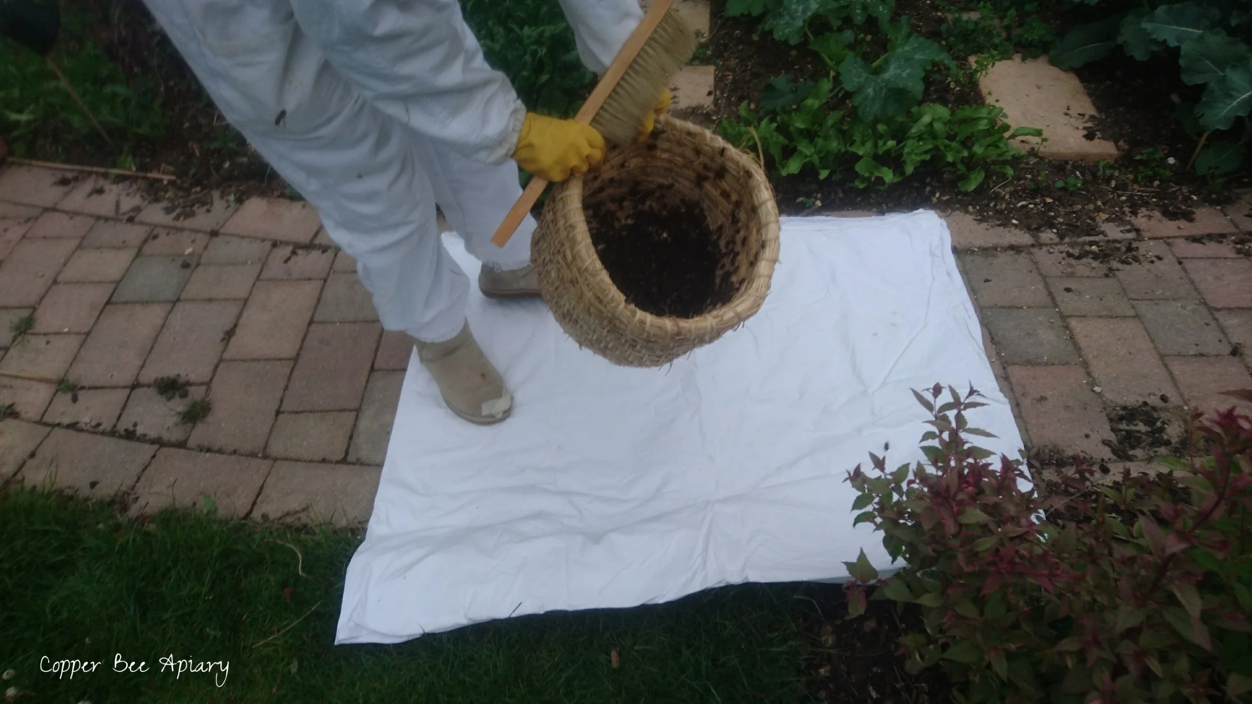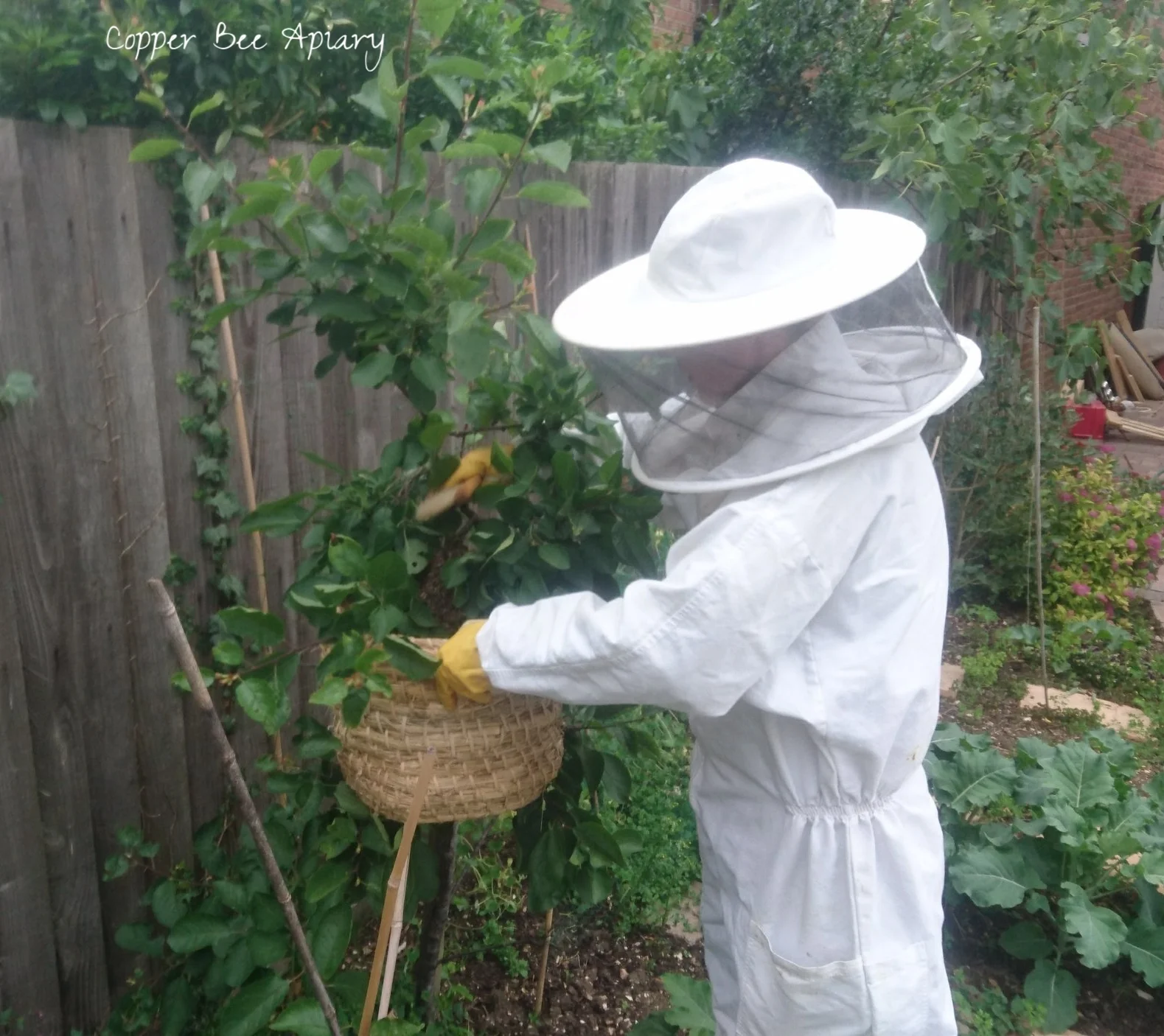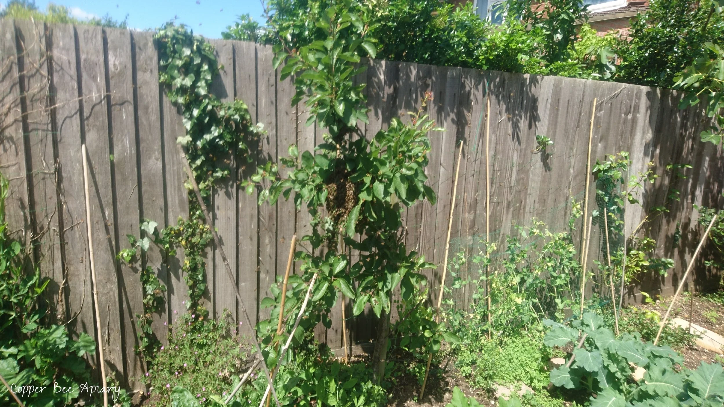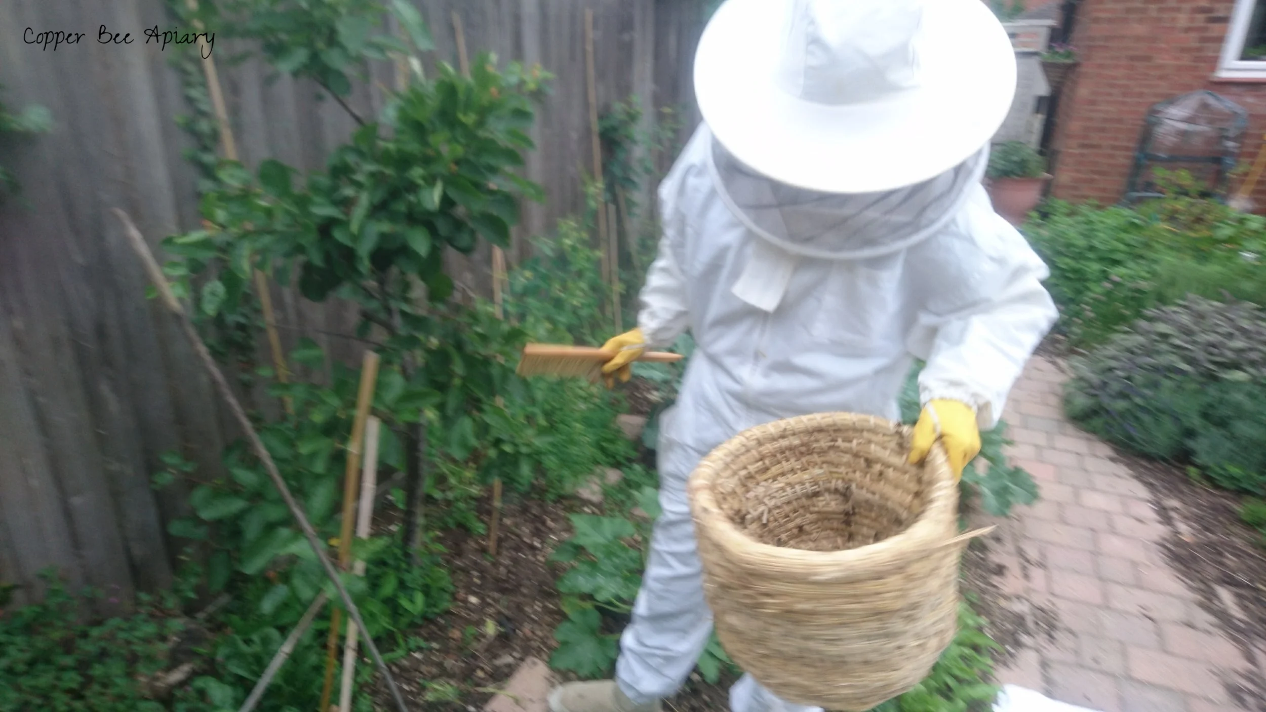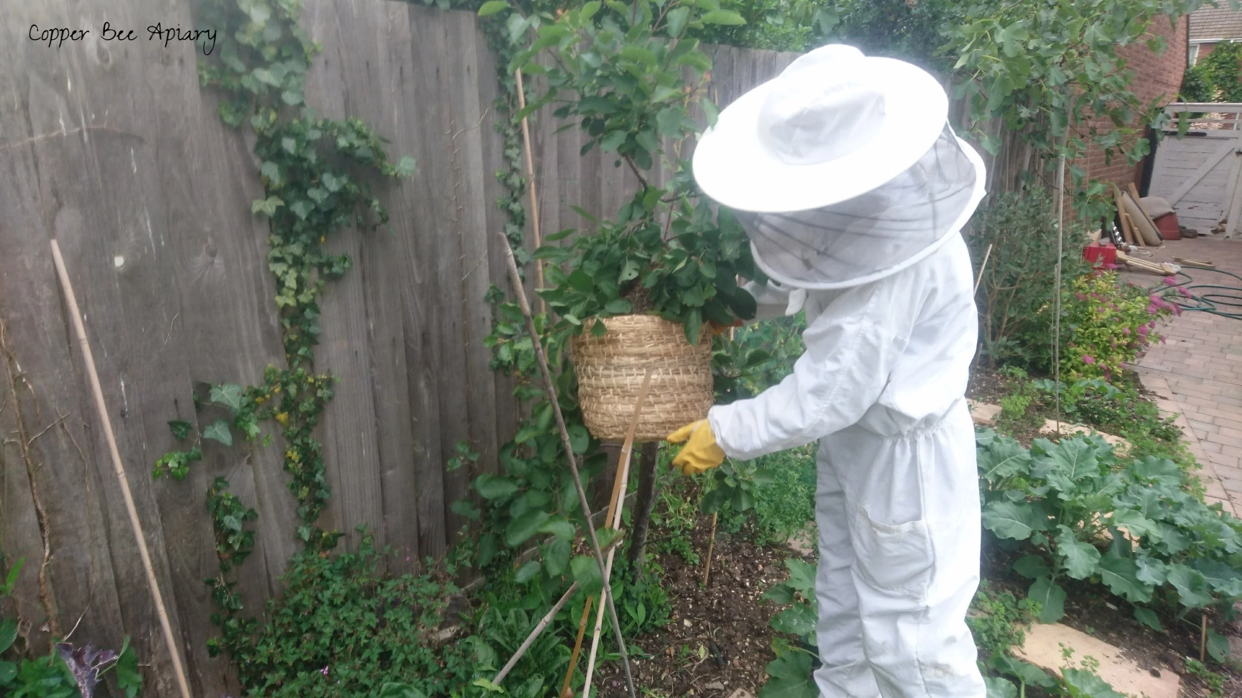 A garden apiary in Whittlesford, Cambridge, UK - honey bees and their beekeeper Hilary van der Hoff.