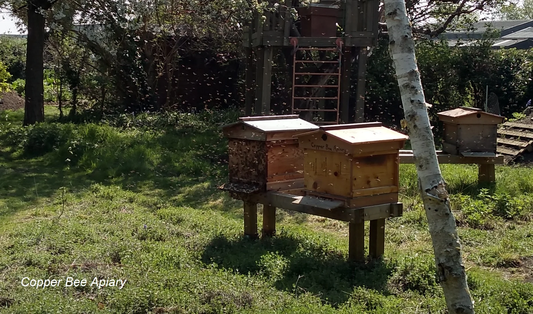 I carried out this procedure on 4 of my 5 colonies, leaving only Queen Mab’s, who tested positive for EFB last year and will be shook swarmed by the Bee Inspector this coming week.